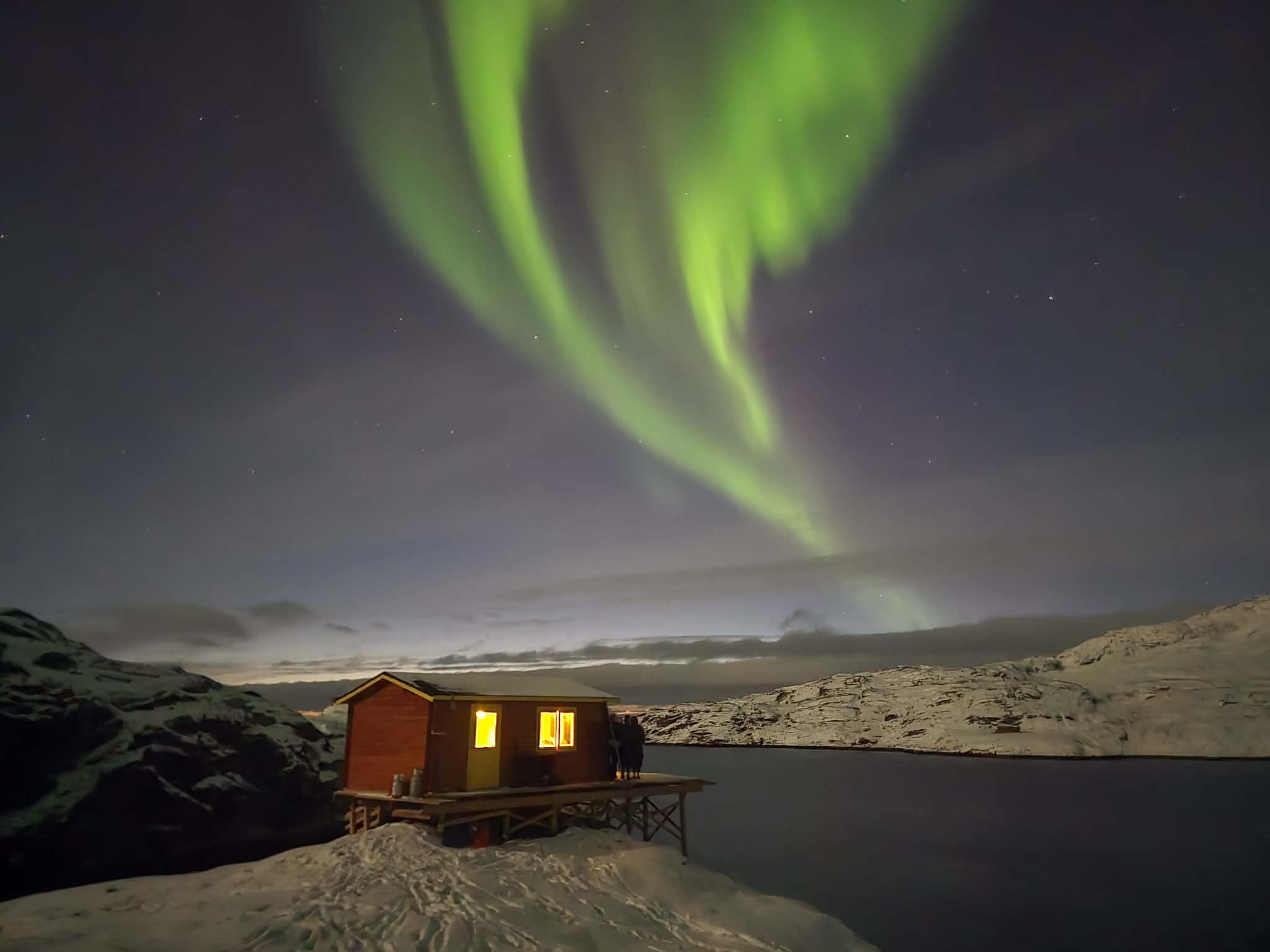 Efter vi har fået isoleret, er hytten blevet et fantastisk hyggeligt sted til weekendture, selv her om vinteren. Den mindre størrelse gør den nem at varme op og skaber en god stemning om aftenen. Det store vindue i fronten er helt perfekt til at nyde udsigten og kigge efter nordlys om natten.